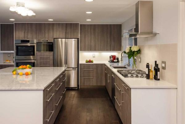 These cabinets were made using IKEA kitchen cabinets. We cut them down to 24″ tall, and suspended them off the floor for a lighter feel. Then to make it totally luxurious we used our custom teak faces with horizontal grain! Speaking of luxurious these tile floors are heated! No more cold little piggies!