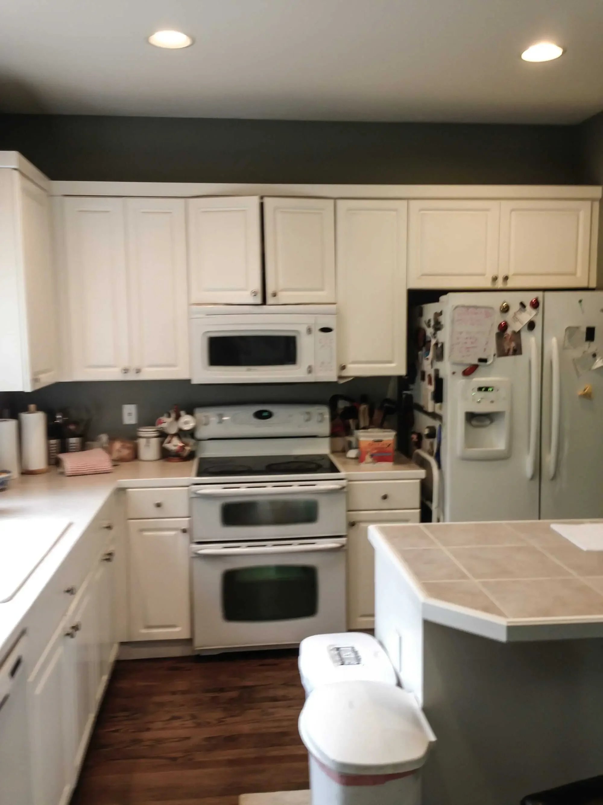 In the picture above, you can see that we took advantage of the home's 9' ceilings by stacking an extra row of 15" tall cabinets on top. In previous decades, the common school of thought was to keep all the cabinets low and within reach, so they would either drop the ceiling, build a soffit, or just leave an empty space above the cabinets, as was the case in the original kitchen.